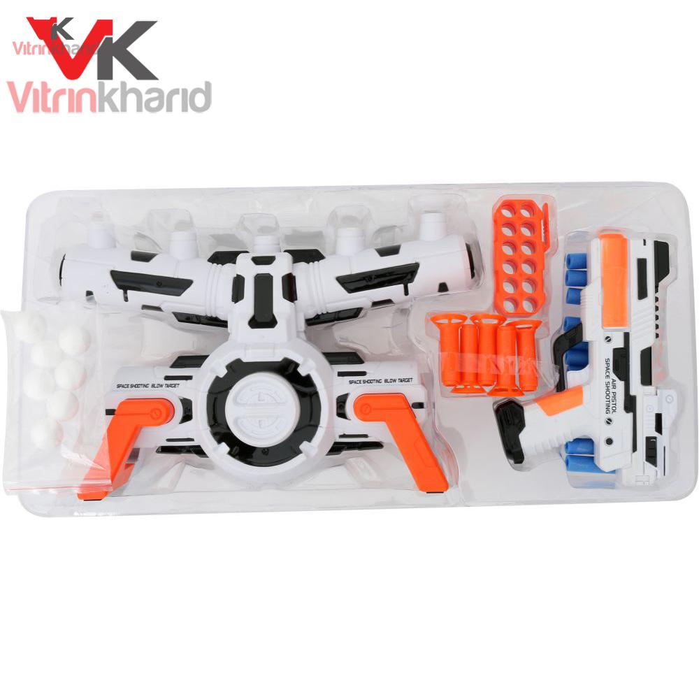 تفنگ بادی Space Wars با اهداف معلق وسیله ایست سرگرم کننده و جذاب برای کودکانی که به بازی های تفنگی شلیک به اهداف ، علاقه دارند. وقتی این محصول قابلیت اینکه اهداف توپ های پلاستیک را به صورت معلق آماده سازد جذابیتش دو چندان نیز می شود. تفنگ تپانچه بادی Space Wars with Air Pistol ساخته شده از پلاستیک با کیفیت بسیار بالا و ترکیب رنگ های جذاب و زیبا است. در پکیج این اسباب بازی تعدادی فشنگ مخصوص پلاستیکی بی خطر قرار داده شده است.استفاده از این محصول می تواند تاثیر زیادی روی کسب مهارت تیر اندازی داشته باشد. عملکرد موزیکال این محصول با استفاده از باطری ( در جعبه موجود نیست) فعال می شود. مشخصات فنی و نظرات