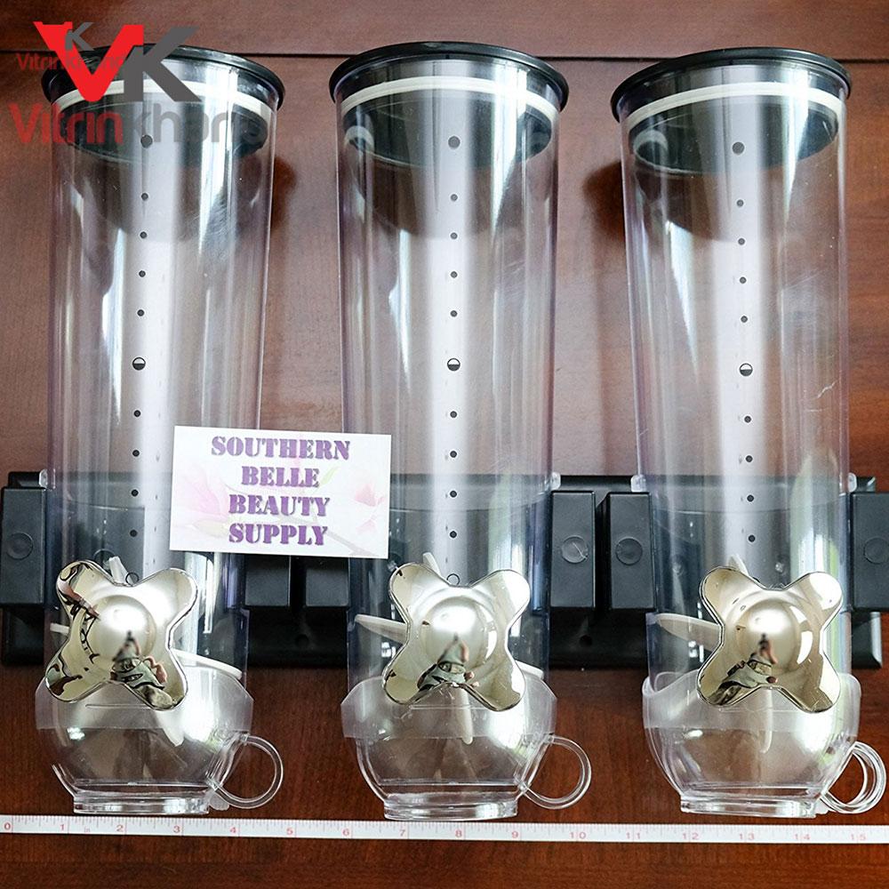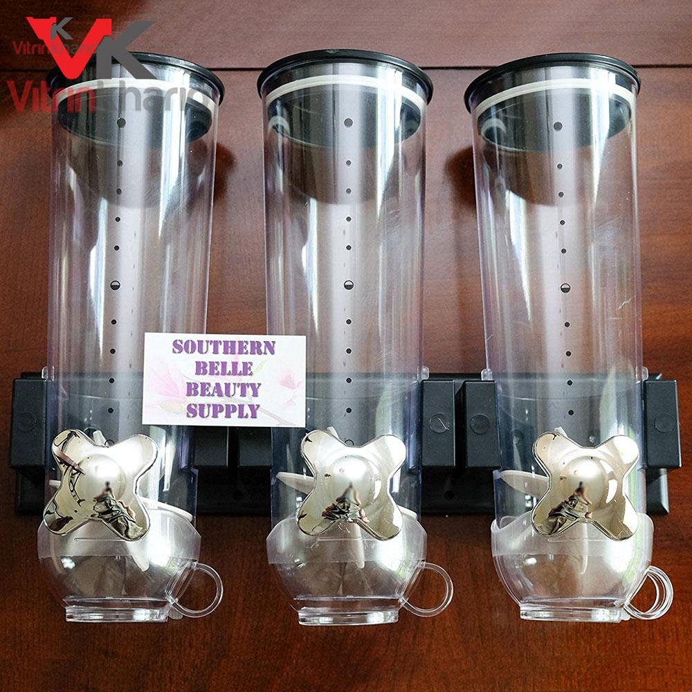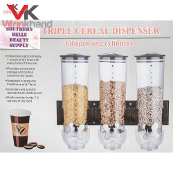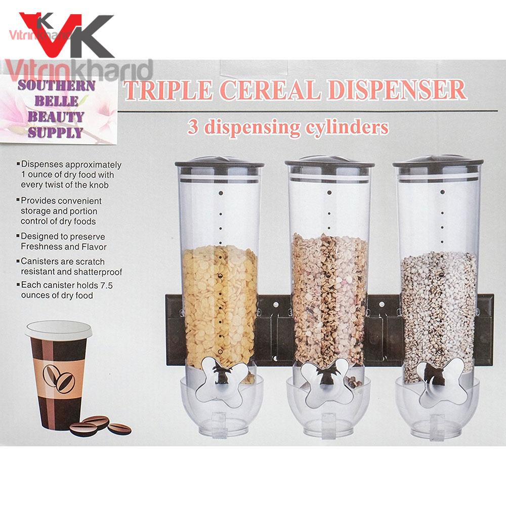 بنشن، حبوبات ، برنج ، خشکبار و ... مواد غذایی هستند که در هر آشپزخانه ای وجود دارد و نیاز به ظروف مخصوص برای قرار دادن این مواد غذایی همیشه در هر خانه ای احساس می شود . جا حبوباتی شیردار سه قلو دیواری مجموعه ای از سه محفظه مخصوص قرار دادن بنشن و مواد خشک در آن تشکیل شده است . ظرف حبوبات شیردار سه قلو با امکان اشغال فضای بسیار کم باعث بی نیازی شما از قرار دادن ظروف حبوبات و .. در کابینت و اشغال فضای آشپزخانه تان می شود. از این محصول، میتوانید برای نگهداری انواع ماکارونی ، نخود ، لوبیا ، عدس و دیگر حبوبات ، تخمه ، آجیل ، دانه قهوه و سایر مواد غذایی خشک استفاده نمایید . در پایین هر محفظه یک پیمانه وجود دارد که گنجایش آنها بین 200 تا 370 گرم (بسته به چگالی مواد غذایی)است و بالای محفظه ها توسط درهایی که از عبور هوا جلوگیری می کنند مواد غذایی را به صورت بهداشتی در طولانی مدت محفوظ نگه می دارد. جنس این پیمانه ها از پلاستیک های بادوام ، ضد خش و نشکن است. برای خارج شدن مواد غذایی ، یک شیر چرخشی پره دار در پایین هر محفظه تعبیه شده که با چرخاندن آن مواد به بیرون ریخته می شود. بدنه محفظه های استوانه ای جا حبوباتی سه قلوی Triple Cereal Dispenser از پلاستیک فشرده با کیفیت مناسب است و به دلیل شفافیت بالایی که دارد بسیار زیبا به نظر می رسد. در درون هر محفظه به طور معمول حدود 1 کیلو گرم و در مجموع سه کیلو گرم مواد غذایی جای می گیرد. لازم به ذکر است پایه نگهدارنده موجود در بسته بندی این کالا باعث شده این محصول قابلیت نصب بر دیوار را داشته باشد. مشخصات فنی و نظرات