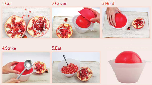 -دانه های انار به راحتی جدا شده و درون کاسه ریخته می شوند.