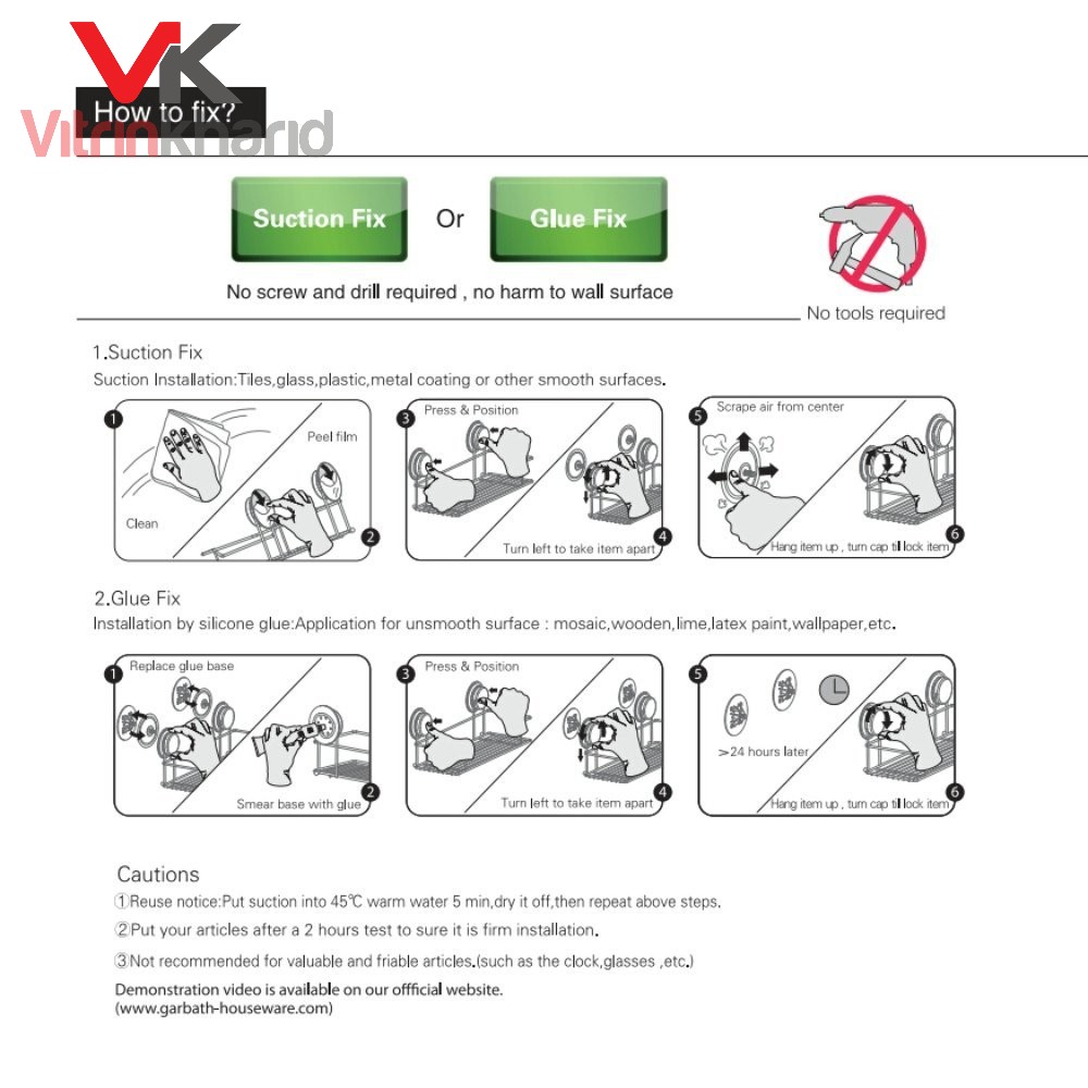 این محصول این قابلیت را دارد که هم به سطوح صیقل و صاف مثل کاشی ، شیشه و ... و هم به سطوح نا صاف مثل موزائیک ، کاغذ دیواری ، چوب و... بچسبد. با استفاده از بادکش های درون بسته بندی می توان به سطوح صاف این وسیله را متصل کرد. همچنین برای سطوح نا صاف هم میتوان با کمک چسب سیلیکونی مخصوص این آویز را به روی دیوار قرار داد. آموزش کامل نصب این آویز حوله در شکل زیر به صورت کامل آمده است.