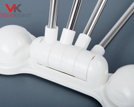 مفصل های چرخشی این محصول این قابلیت را مهیا می سازد به صورت مساوی بتوانید حوله ها یا لباسها را با زوایه 36 درجه از هم مجزا پهن کرده تا بخوبی خشک بشوند. فاصله عمودی میله ها از همدیگر در حدود 28 میلی متر می باشد.